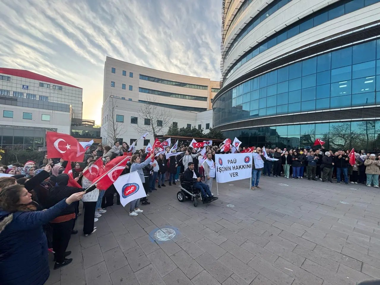 Pamukkale Üniversitesi Hastanesinde görev yapan Türk Sağlık İş Sendikası üyesi sağlıkçılar, PAÜ yönetimi tarafından çalışanlar arasında ayrım yapıldığını iddia ederek, yataklı servisler önünde 1 saatlik eylem yaptı. Eşit çalışma şartları ve eşit ücret talebiyle PAÜ Hastanesi yataklı servisler önünde gerçekleşen 1 saatlik eyleme farklı illerden gelen sendika yetkilileri de destek verdi.