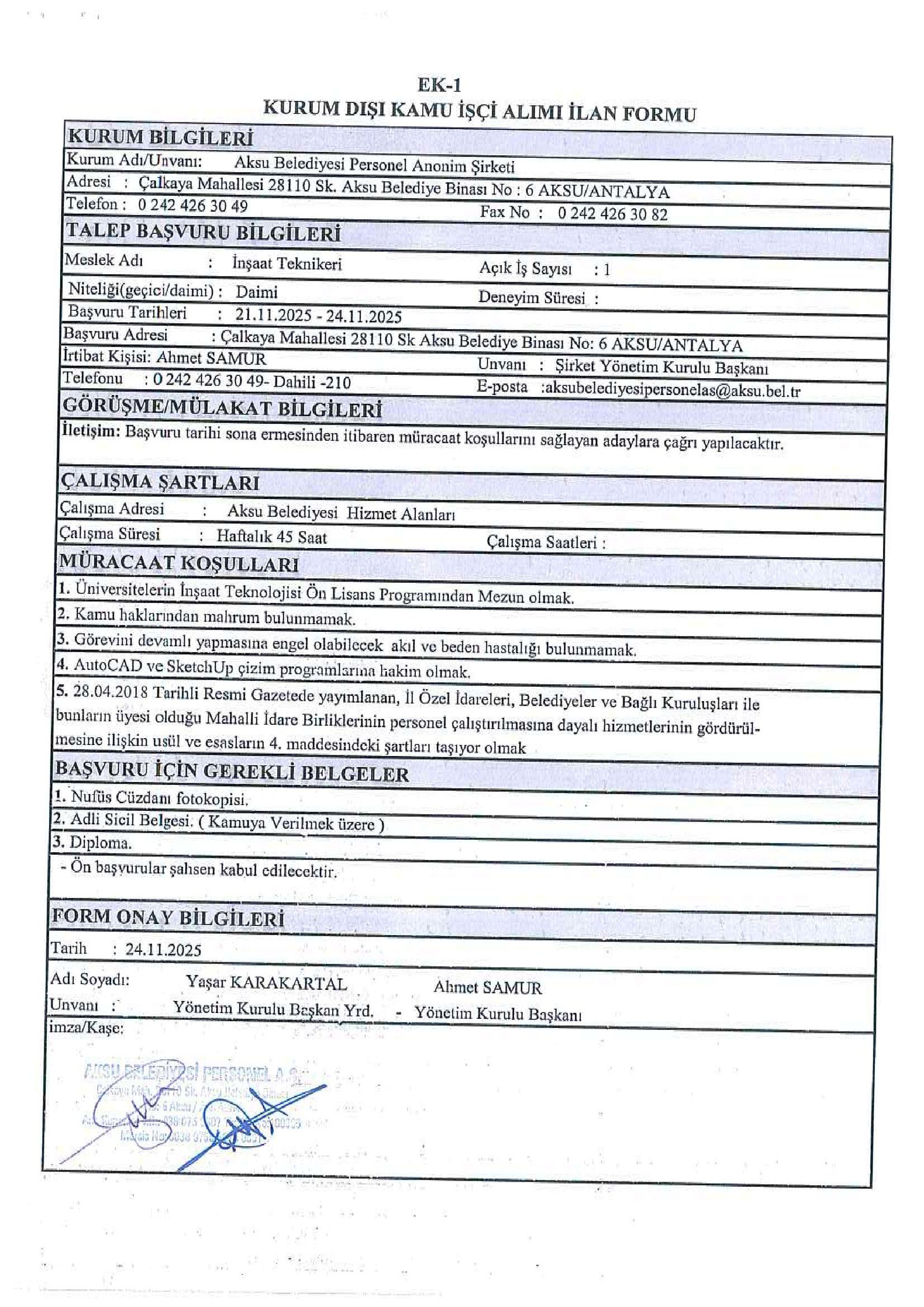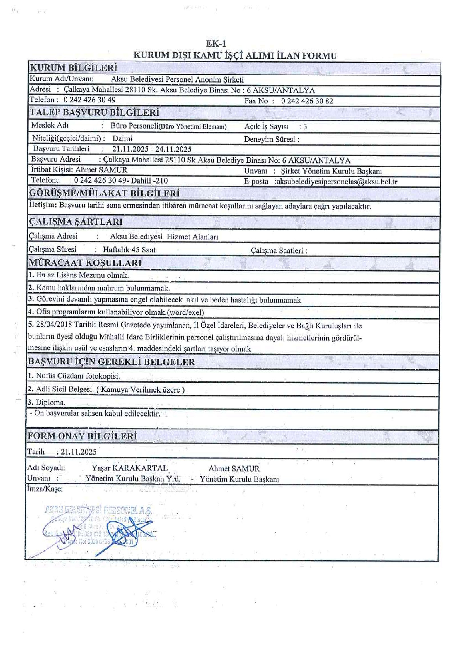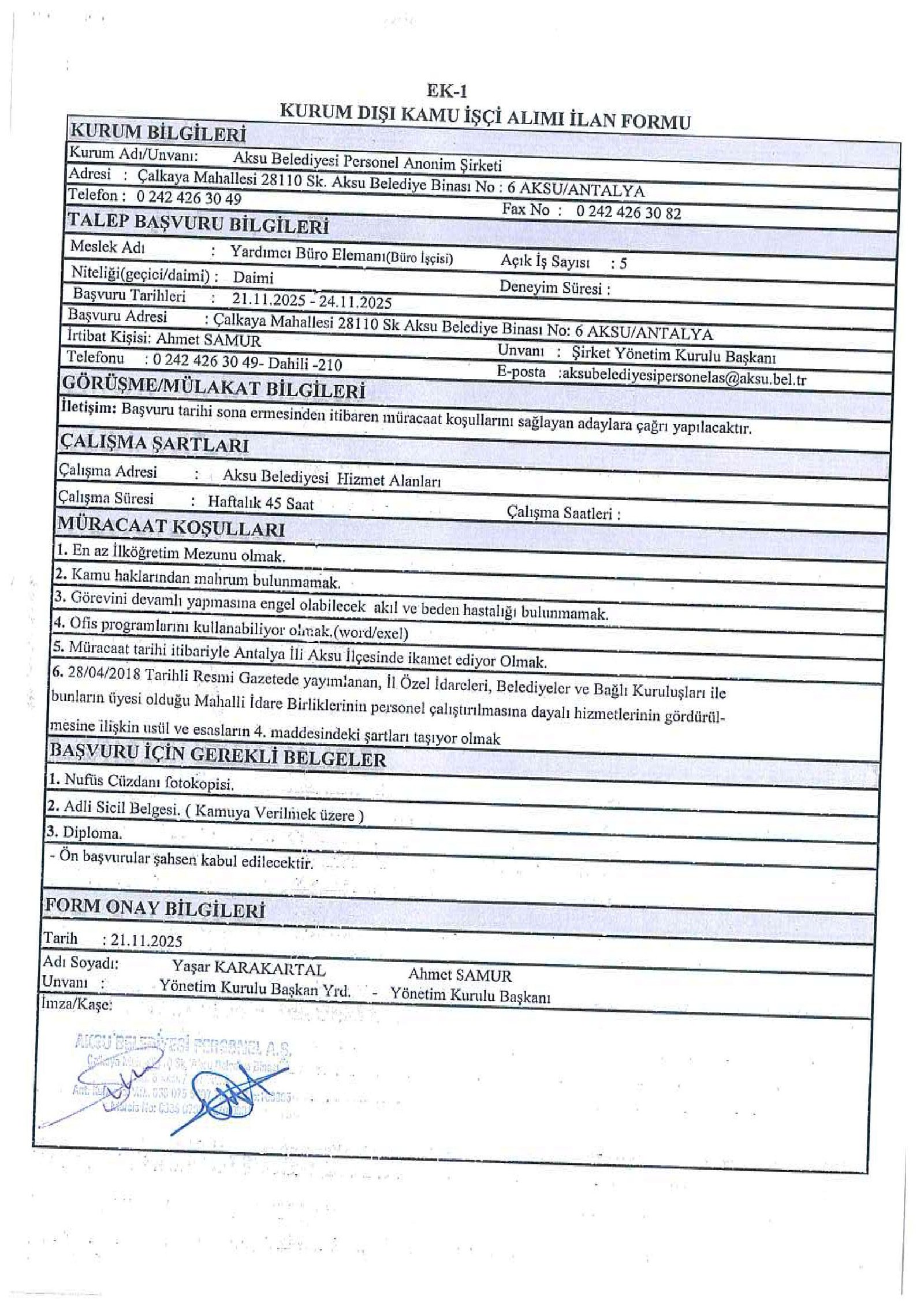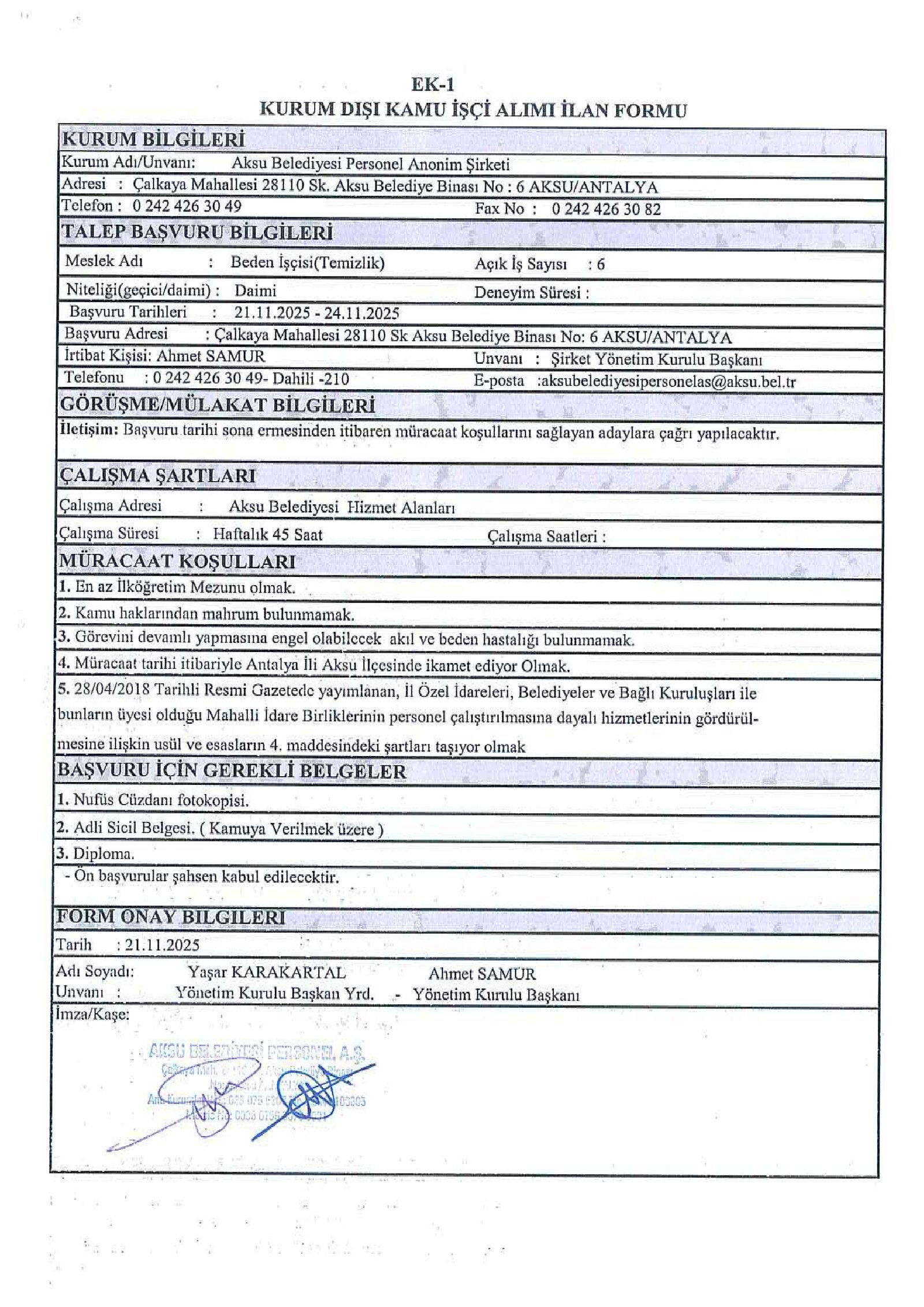 Antalya Aksu Belediyesi 23 İşçi Alacak. Son başvuru tarihi 24 Kasım 2025