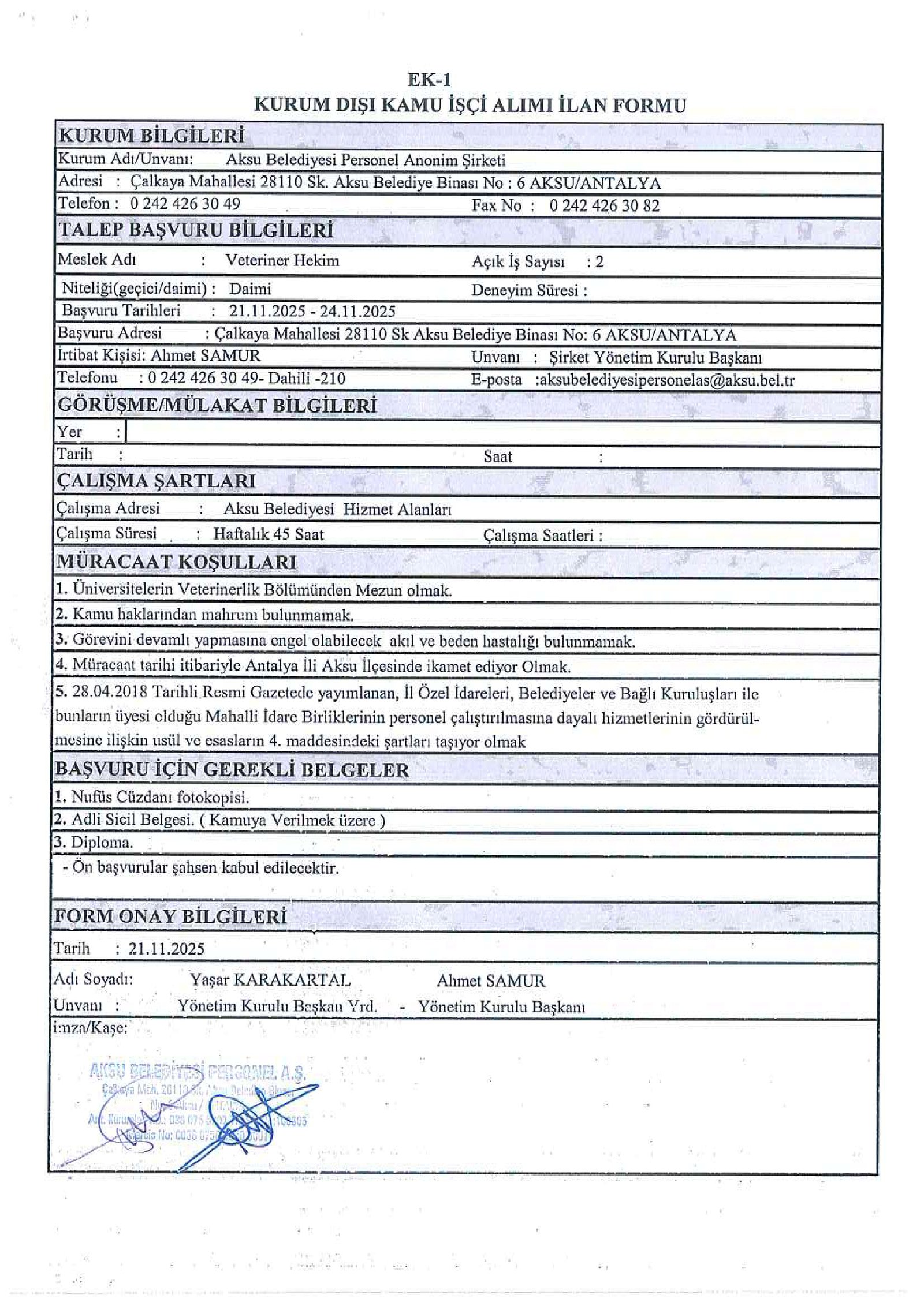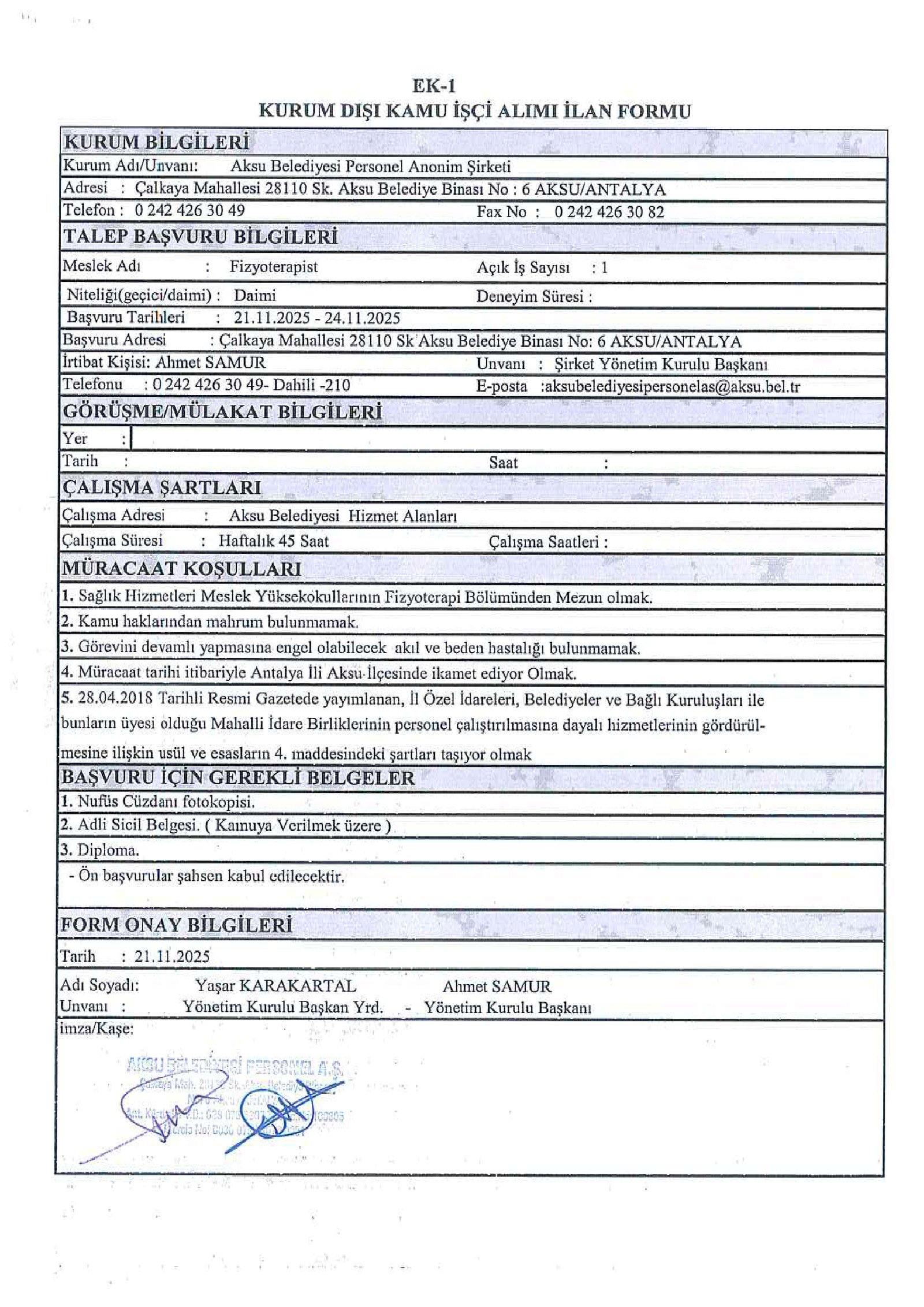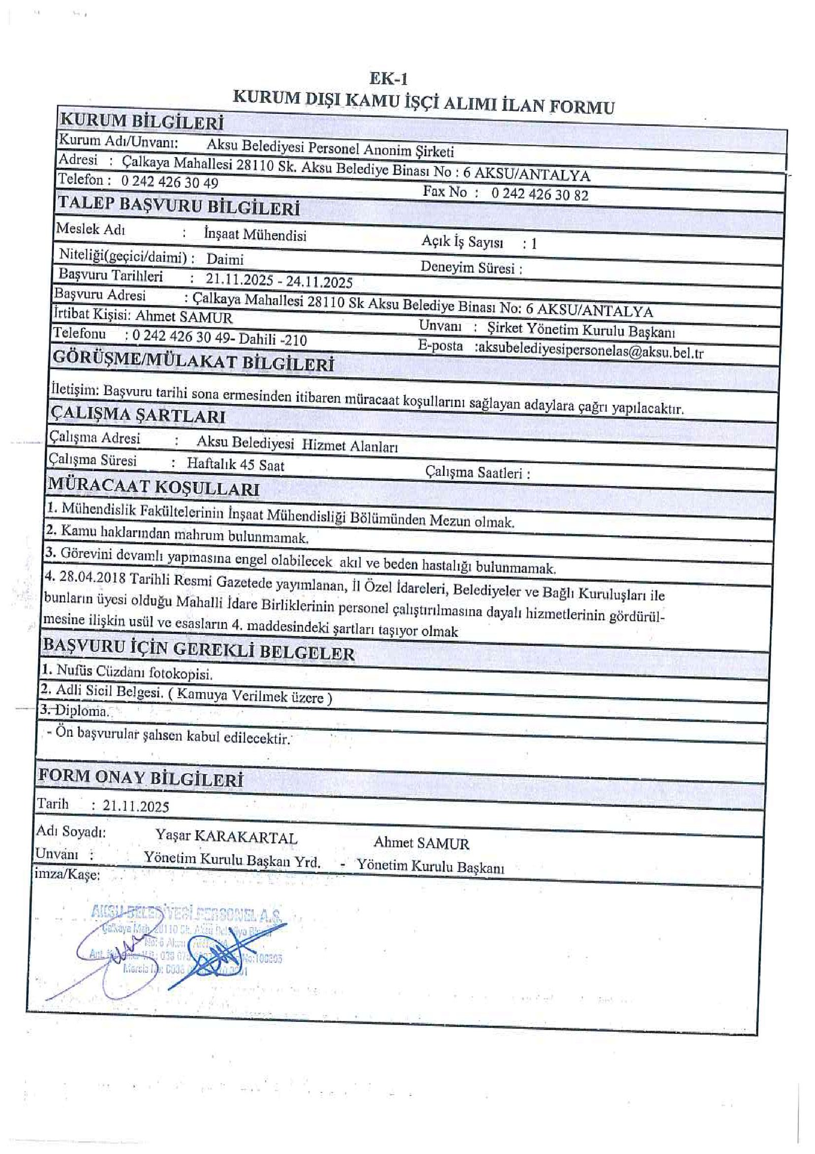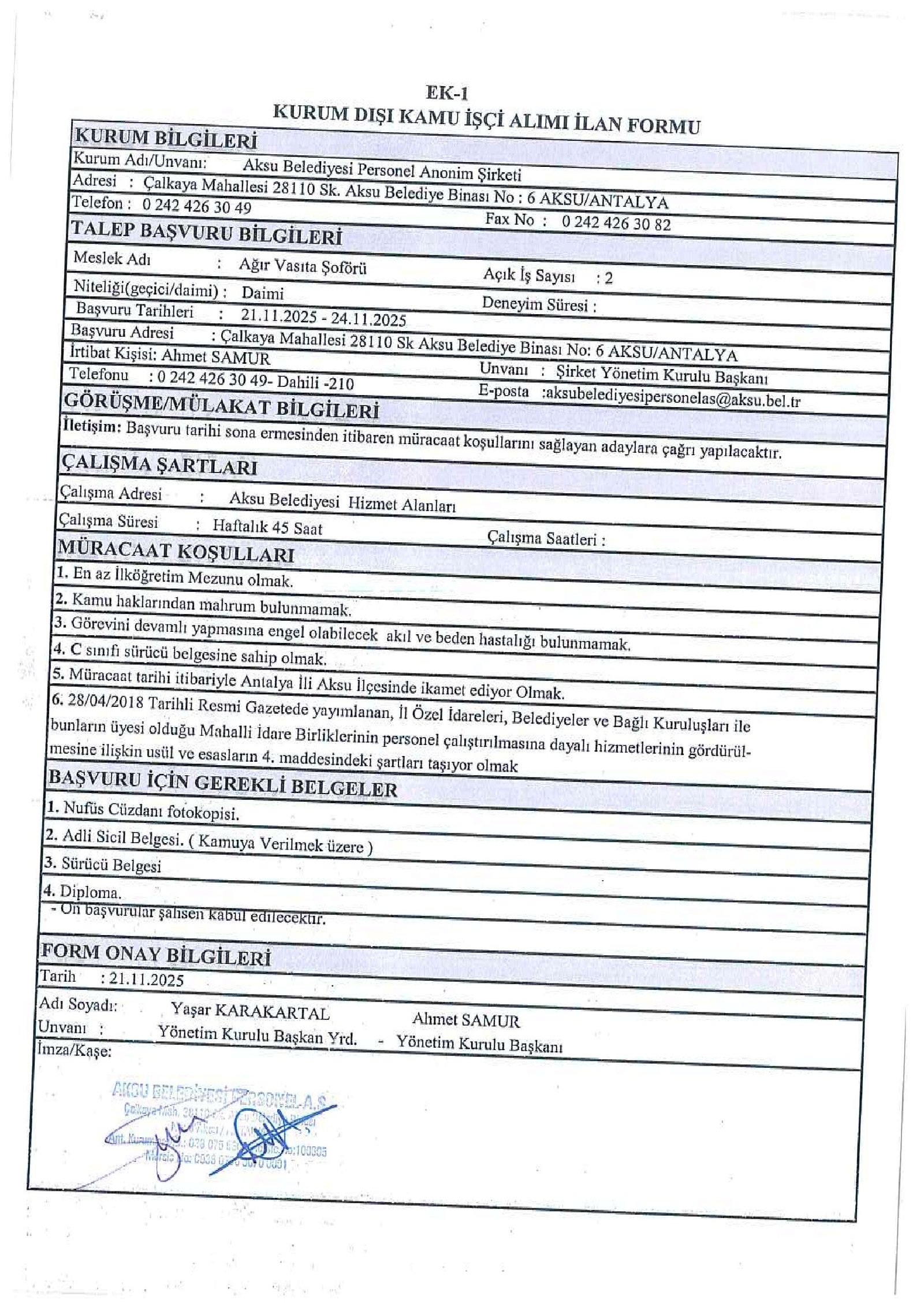 Antalya Aksu Belediyesi 23 İşçi Alacak. Son başvuru tarihi 24 Kasım 2025