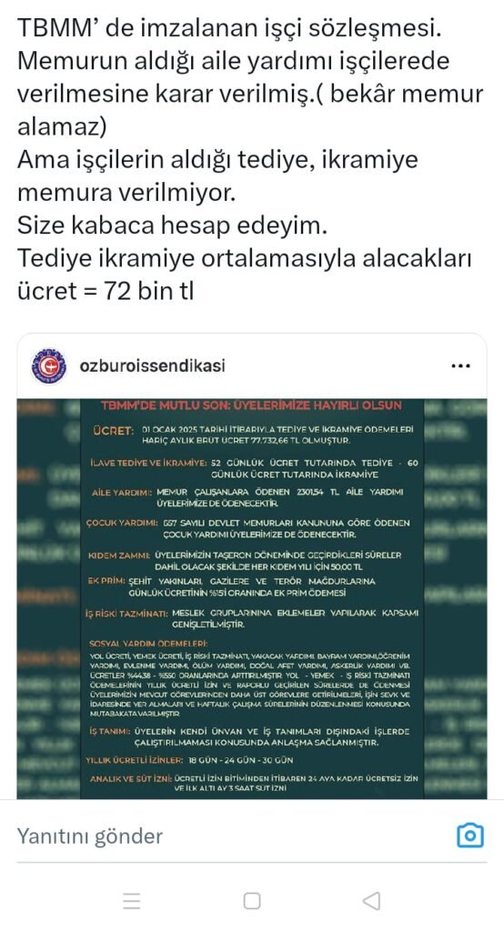 İşçiler için kazanılmış bu hakların, memur kesimiyle kıyaslanarak “işçilere fazladan maaş veriliyor” gibi sunulması, hem işçilerin emeğini gölgelemekte hem de kamu çalışanları arasında suni bir ayrışma yaratmaktadır.