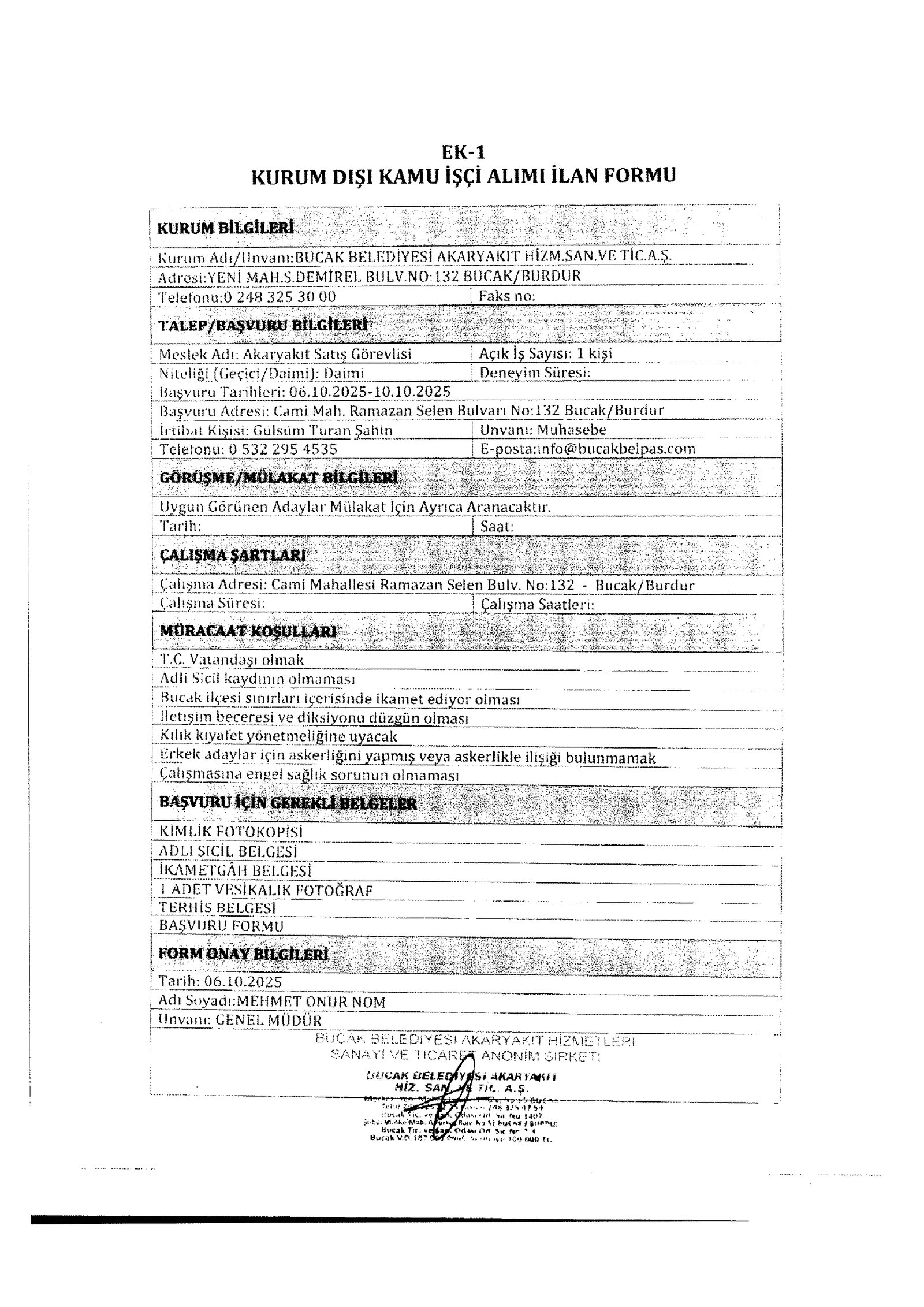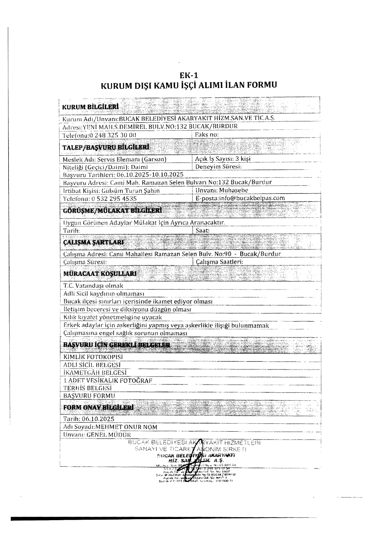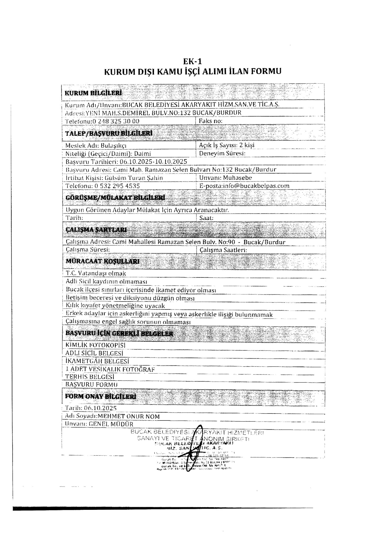 Burdur Bucak Belediyesi 6 İşçi Alacak. Son başvuru tarihi 10 Ekim 2025