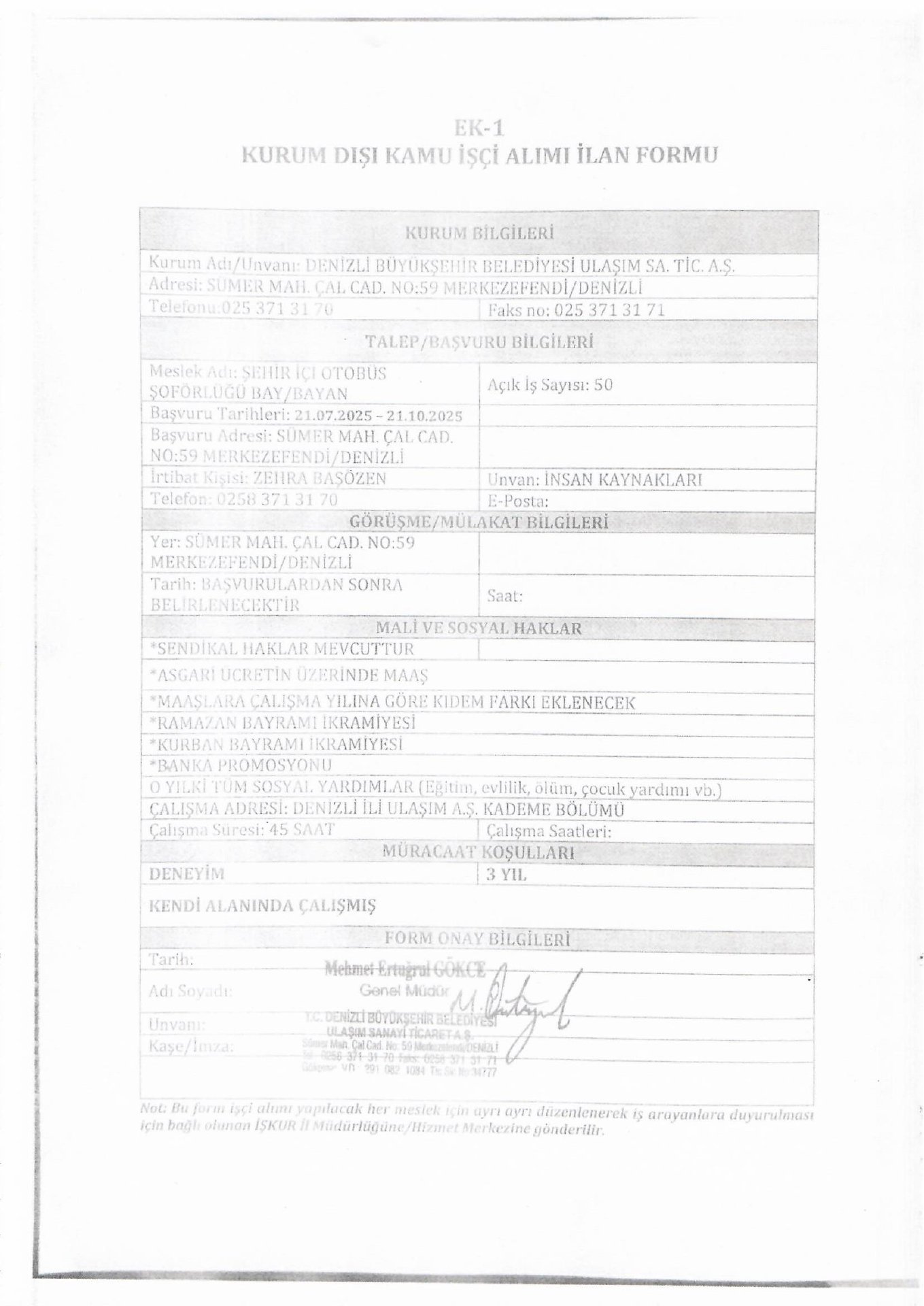 Denizli Büyükşehir Belediyesi 50 İşçi Alacak. Son başvuru tarihi 21 Ekim 2025