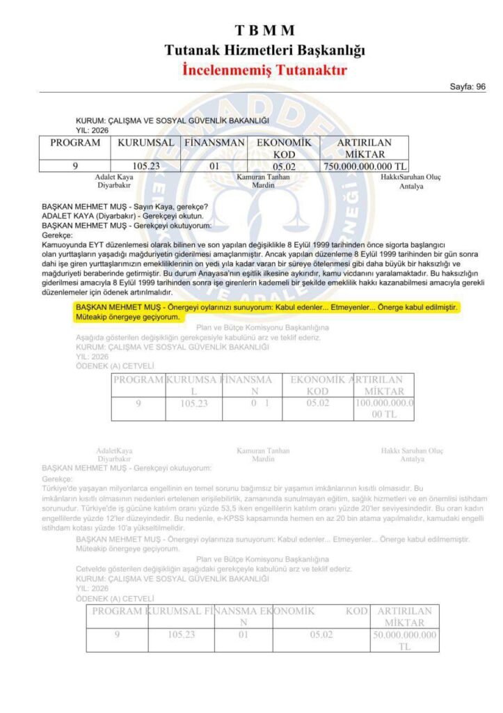 Sabah saatlerinde TBMM’nin resmî tutanaklarından alınan ve kamuoyuyla paylaşılan bir görsel üzerine açıklama yapan Emeklilikte Adalet Derneği (EMADDER), tutanaklara hatalı aktarım nedeniyle yanlış bilgi oluştuğunu duyurdu.