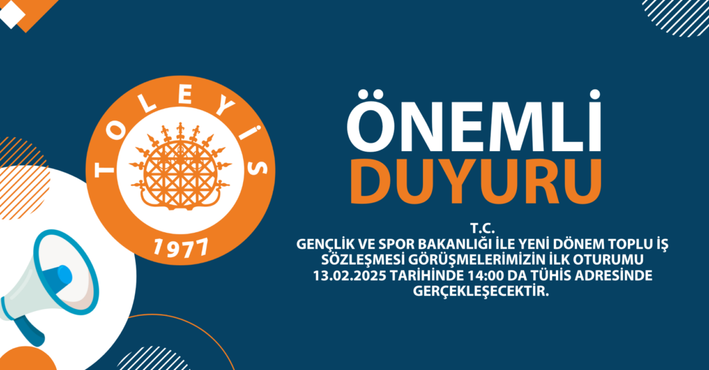 Gençlik ve Spor bakanlığı 18 Nolu İşkolunda faaliyet gösteren iş yerleri için Toplu İş Sözleşmesi görüşmelerinin ilk oturumu 13.02.2025 tarihinde saat 14.00 olarak açıklandı.
