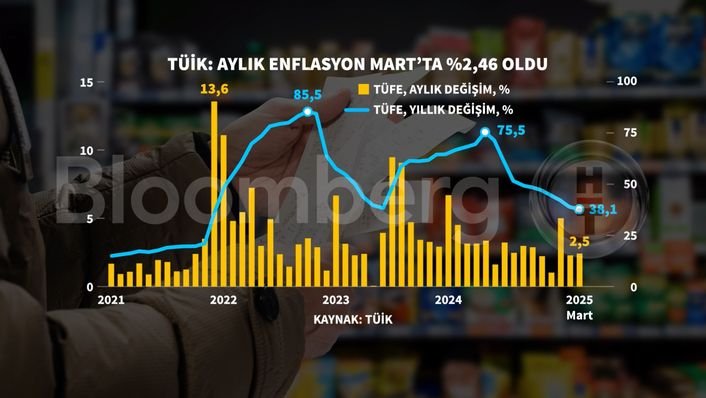 Mart’ta tüketici fiyatları aylık olarak yüzde 2,46 arttı. Yıllık artış da yüzde 38,10 olarak kaydedildi.