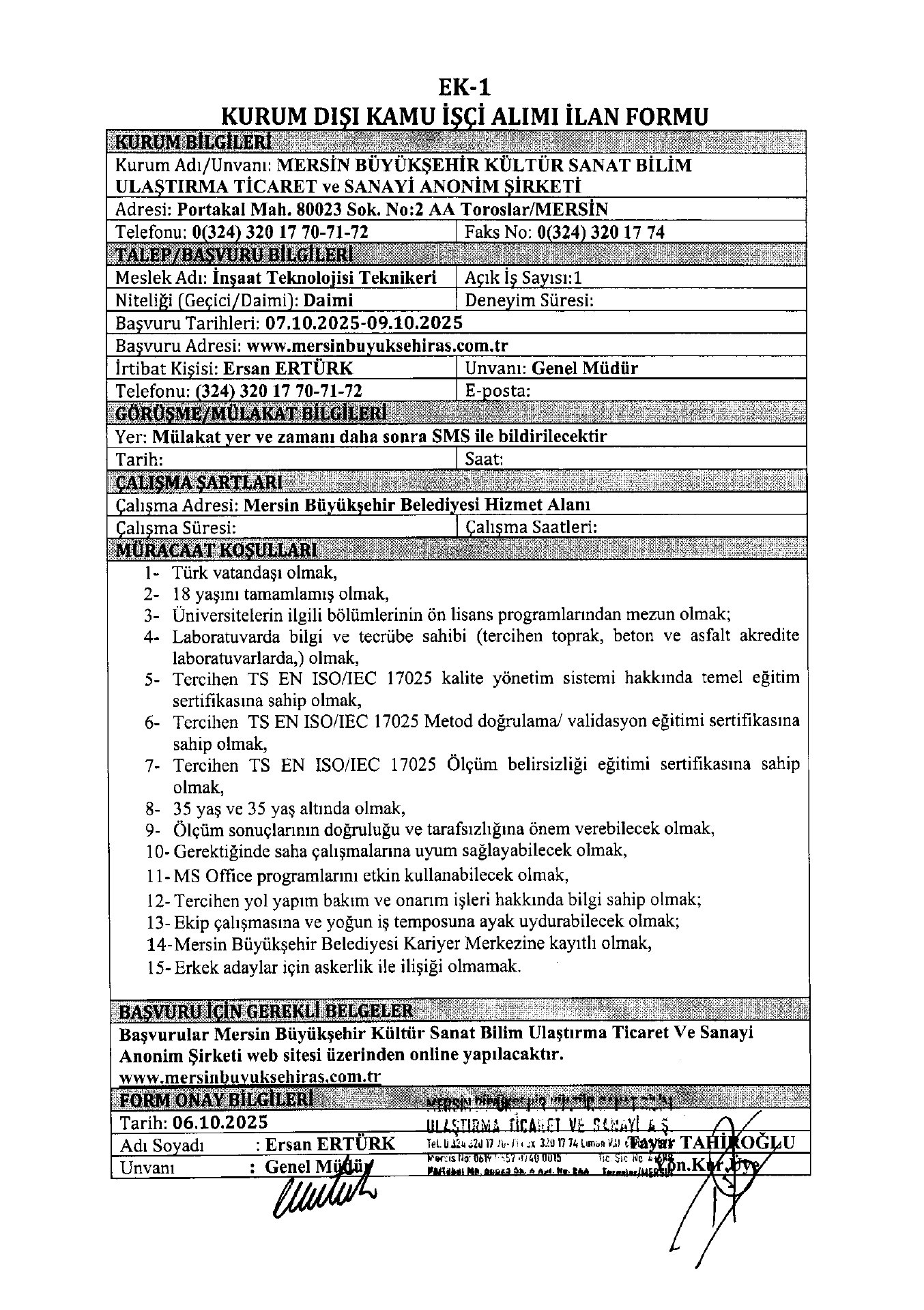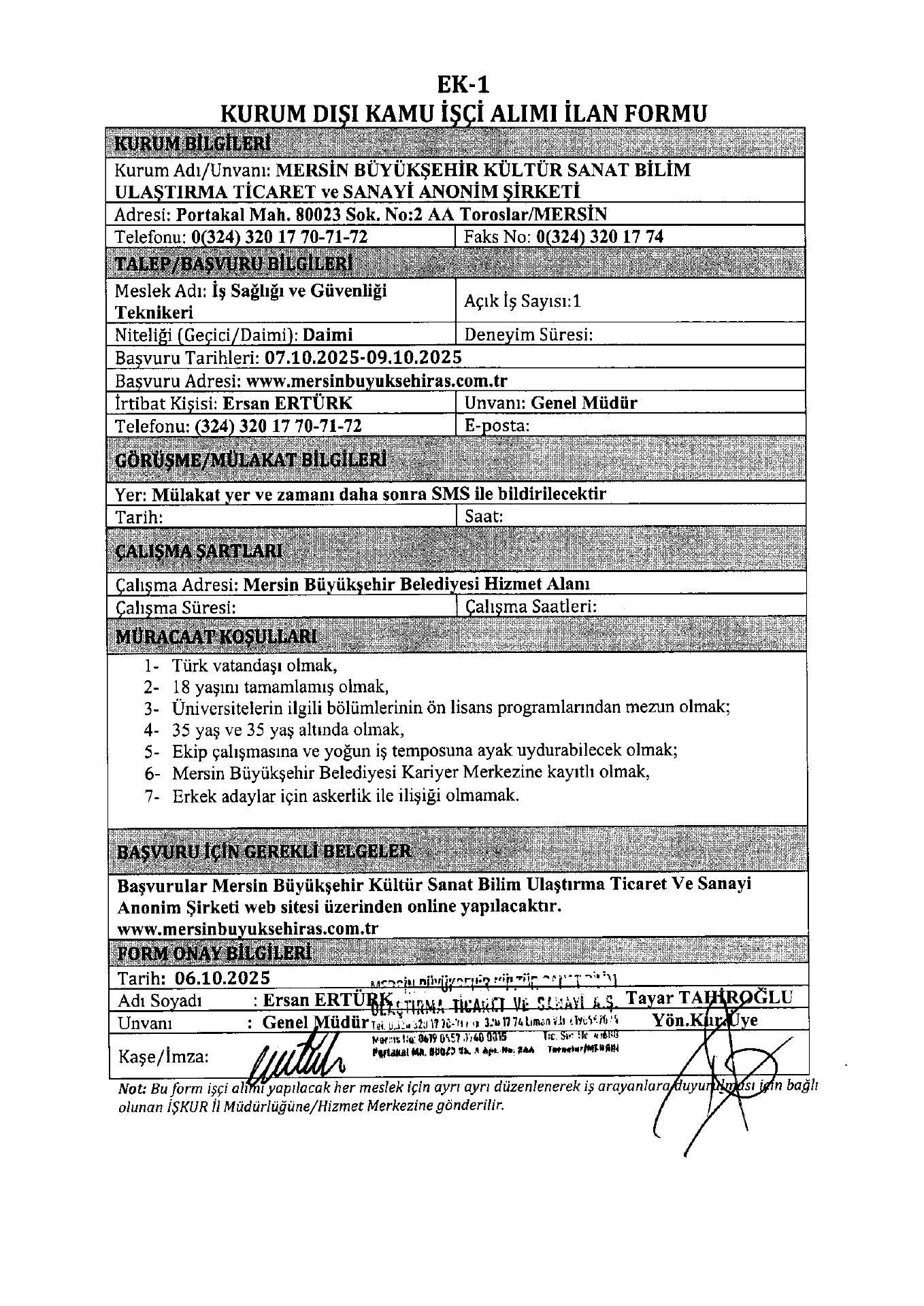 Mersin Büyükşehir Belediyesi 14 İşçi Alacak. Son başvuru tarihi 11 Ekim 2025