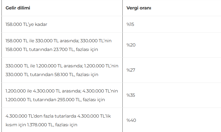 Açıklanan 2025 vergi dilimleri bu şekilde: